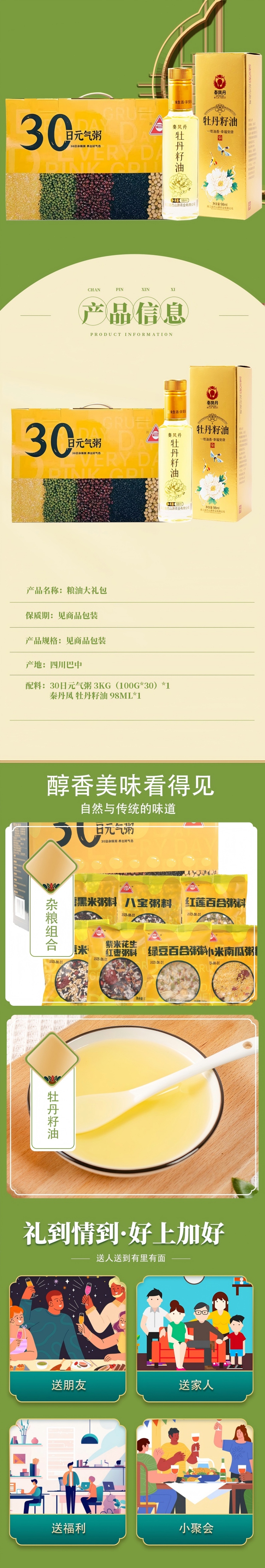 川珍 30日元气粥 3kg(100g*30) 秦丹凤 牡丹籽油 98ml