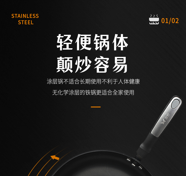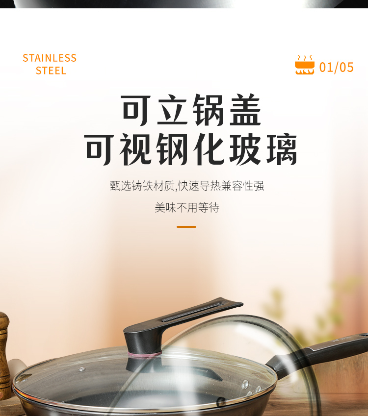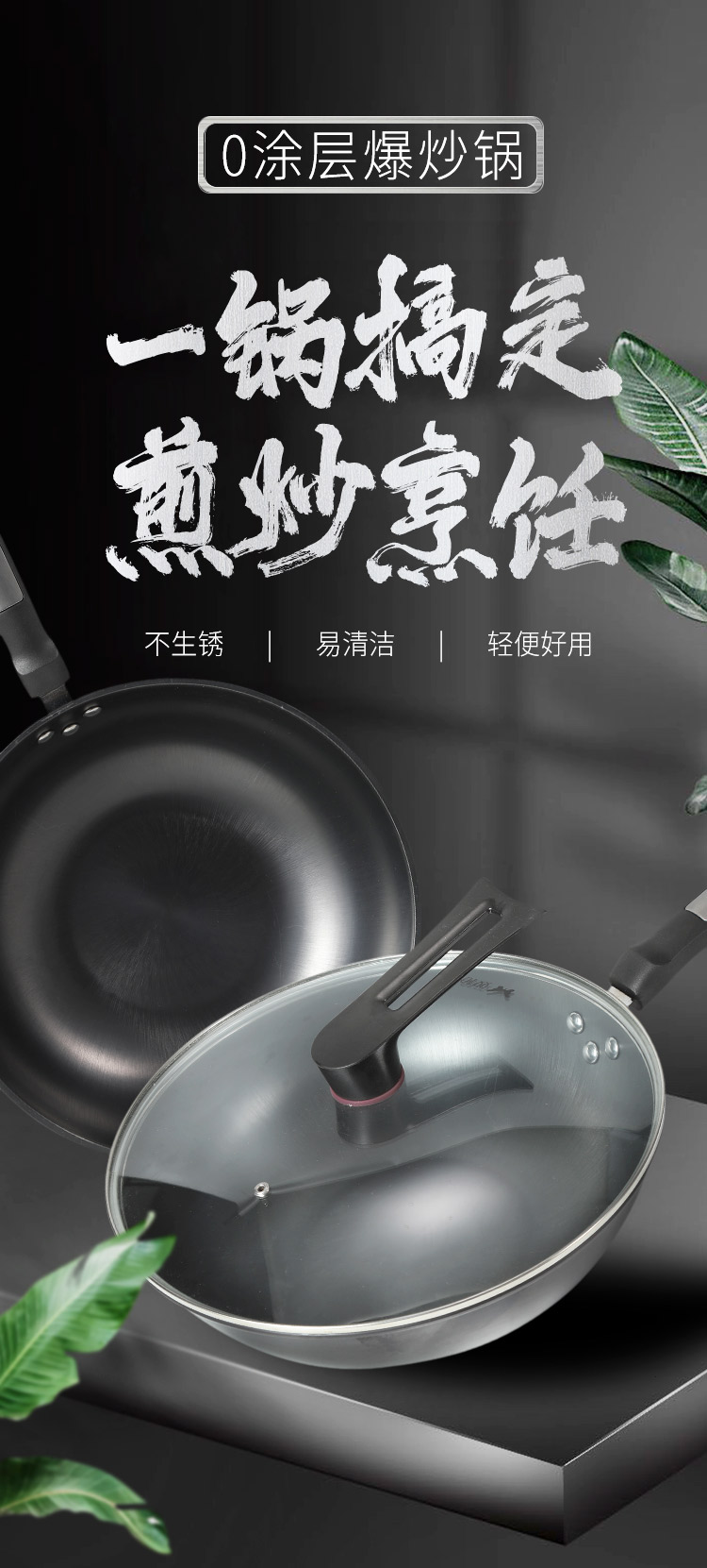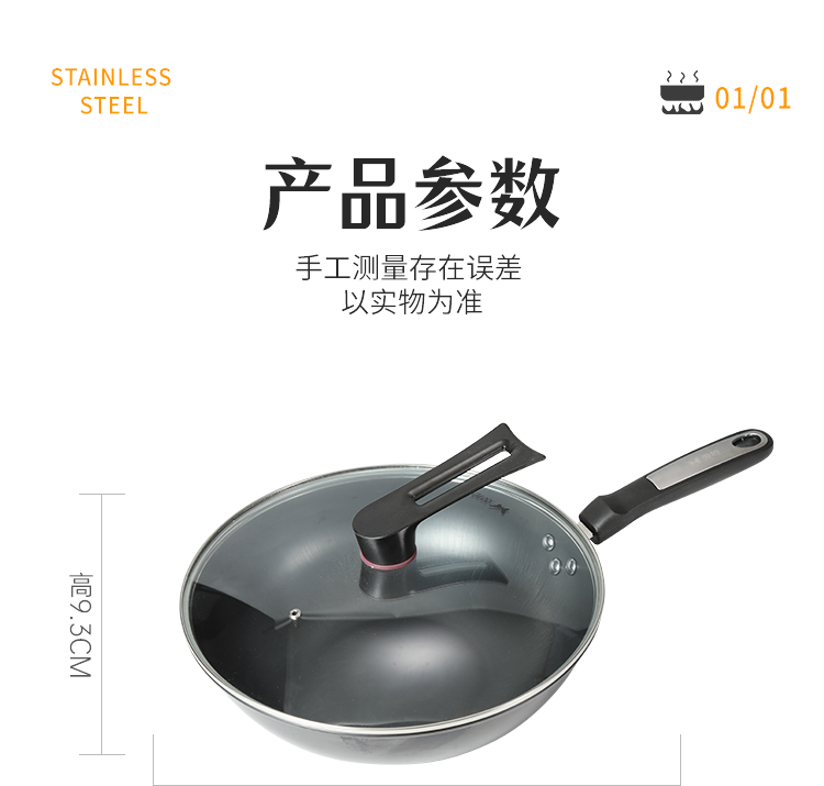 双枪 0涂层爆炒锅 带盖